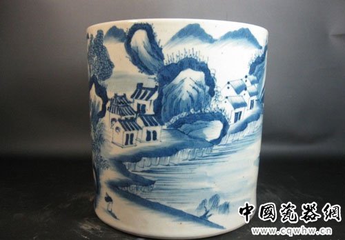 康熙君临天下达61年之久,政通人和,文化昌盛,瓷器的生产发展到了一个高峰,除发明了珐琅彩、粉彩、豇豆红等新品种的瓷器外,康熙青花瓷是中国青花史上的最高峰,文房用瓷在这一时期的烧制数量和工艺水平都到达了历史的最高峰,其中以笔筒最为出色。