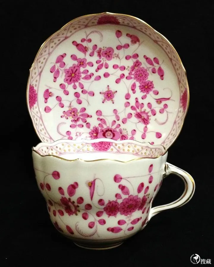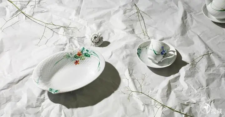 这系列餐具创作于1745年,是梅森从早期仿东亚风格转变后的全新设计,器型精美,边缘呈波纹形,把手则是分叉的枝叶形。这个系列的器型应用很广泛,搭配了梅森许多经典的图案装饰,比玫瑰或蓝洋葱等。