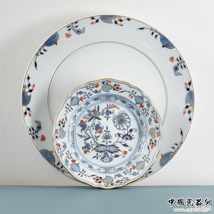 2004年时,蓝洋葱系列有了新版本,除了图案有部分改动外,颜色则从原来的单一钴蓝色变成了“皇家蓝(noble blue)”,多了鲜亮的红色和金色。