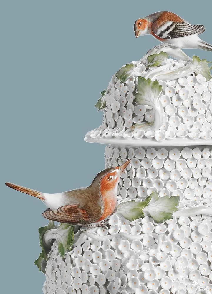雪球花系列诞生于1739年,也是该时期最杰出的作品。这个系列代表了高超的美学和技艺水平,每一朵花都是由手工制作,再用工具置于瓷器之上,然后分别上色。