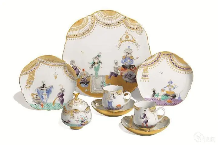 这个系列制造于1844-1855年间,也是梅森的历史主义经典,融合了文艺复兴时期、巴洛克时期和洛可可时期的元素,彩绘结合鎏金浮雕装饰,优雅华贵。