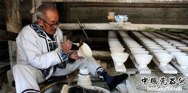 施釉:普通圆器采用醮釉或荡釉。琢器或大型圆器用吹釉