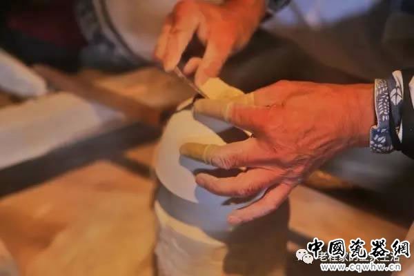 利坯——拉成的坯半干时,置于辘轳上,用刀修整,使器表光洁,厚薄均匀,这道工序称为利坯。这是器物整形的关键步骤。