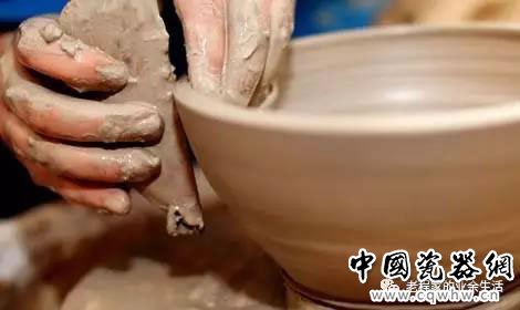 拉坯——把坯泥置于辘轳(即轮上),借辘轳旋转之力,用双手把坯泥拉成所需的形状,这是我国陶瓷器生产的传统方法,这一工艺过程称为拉坯。盘、碗等圆器都用拉坯方法成型。
