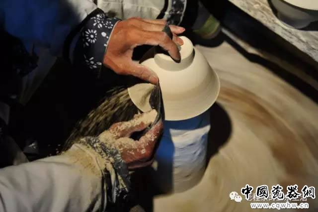 挖足——圆器拉坯时器底留下一个3寸长的泥靶(柄),然后挖成器的底足,这道工序称为挖足。